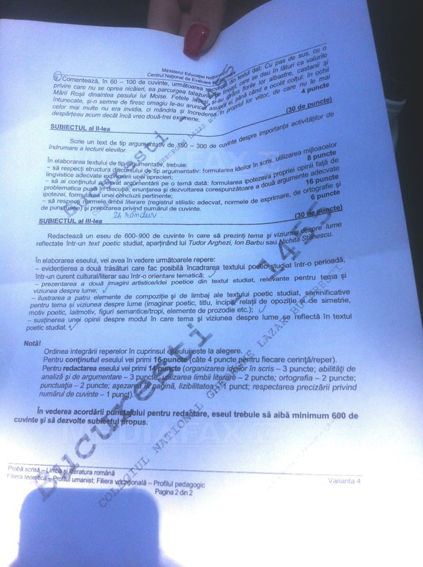 Subiectele la limba română pentru profil real, pagina 2