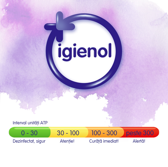 Deasemenea, pentru o telecomandă TV avem 663 de unităţi înaintea folosirii produselor Igienol şi 5 unităţi după igienizare, pentru pardoseală avem 1922 de unităţi ATP urmată de diminuarea lor la 85. La telefonul mobil se ajunge la un rezultat foarte periculos de 4039 de unităţi ATP, iar după dezinfectare scade la 43;