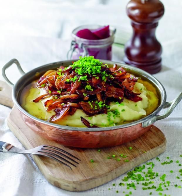 Danezii preferă piureul de cartofi cu şuncă şi ceapă prăjite deasupra.