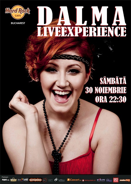 Pe 30 noiembrie, de la ora 22:30, vei avea parte de o experienta live de neuitat! Dalma si colegii sai de trupa - Ovidiu „Cico” Cristian (tobe), prof. Florin „Führer” Balan (clape), Gyergyay „Serghey” Szaby (bass), Alex „Miaaau” Cotoi (chitara), Aaron „Alto” Eltes (saxofon), Andreea & Larissa (backing vocals) - vor canta pentru tine cele mai indragite hituri ale ultimelor decenii: “I’m Outta Love” - Anastacia, “Simply the Best” - Tina Turner, “Eternal Flame” - The Bangles, “Black Velvet” - Alannah Myles si multe altele.