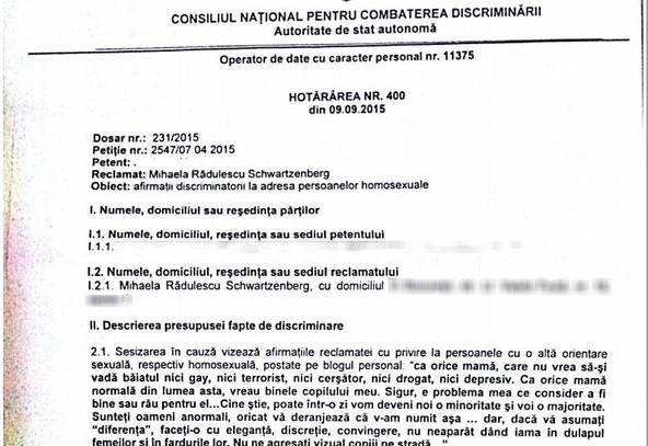 Chiar dacă ulterior ea şi-a mai nuanţat poziţia şi a explicat că nu a dorit să jignească pe cineva, Consiliul Național pentru Combaterea Discriminării a hotărât să o amendeze pe Mihaela Rădulescu cu 3.000 de lei pentru afirmațiile sale.