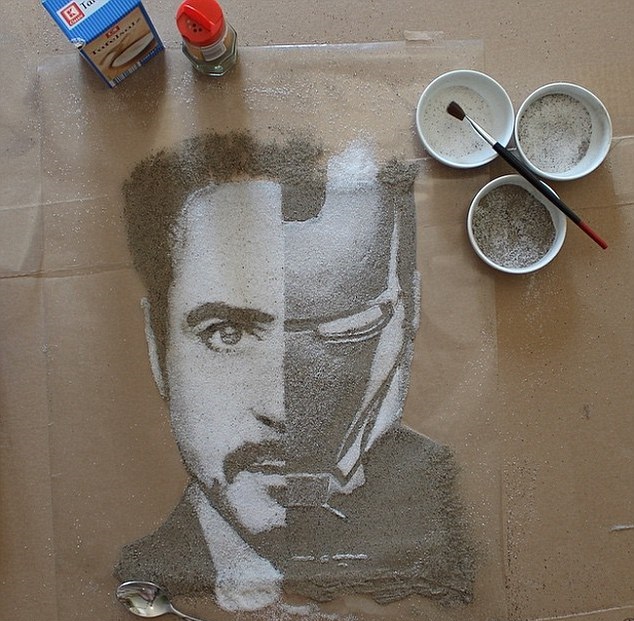 Portretul lui Robert Downey Jr, realizat din sare şi piper