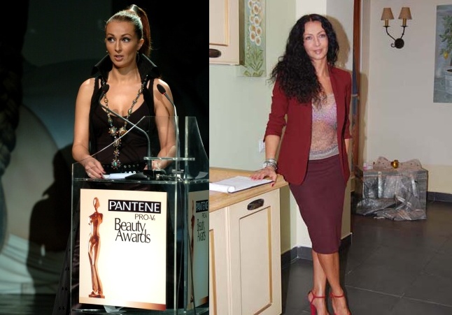 Mihaela Rădulescu, la 30 de ani, impecabilă la o şedinţă foto, în prima poză. În cea de-a doua fotografie, Mihaela Rădulescu, la 40 de ani, la lansarea celei de-a doua cărţi, trădată de ridurile de pe gât.