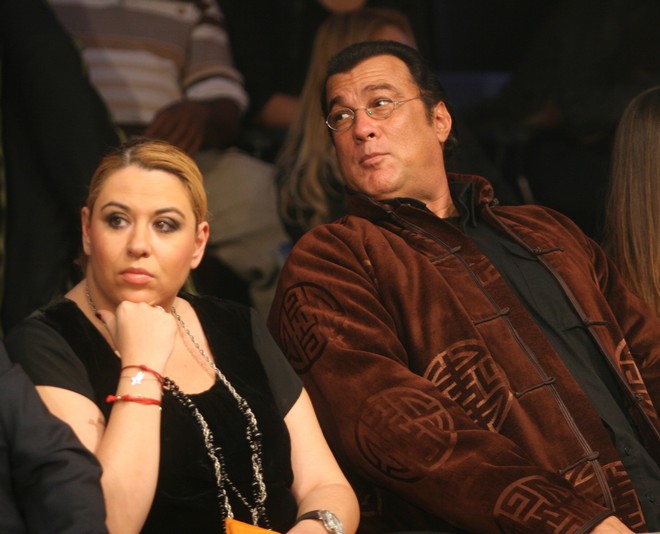 Oana Roman, pricepută la relaţii publice, aici alături de actorul Steven Segal