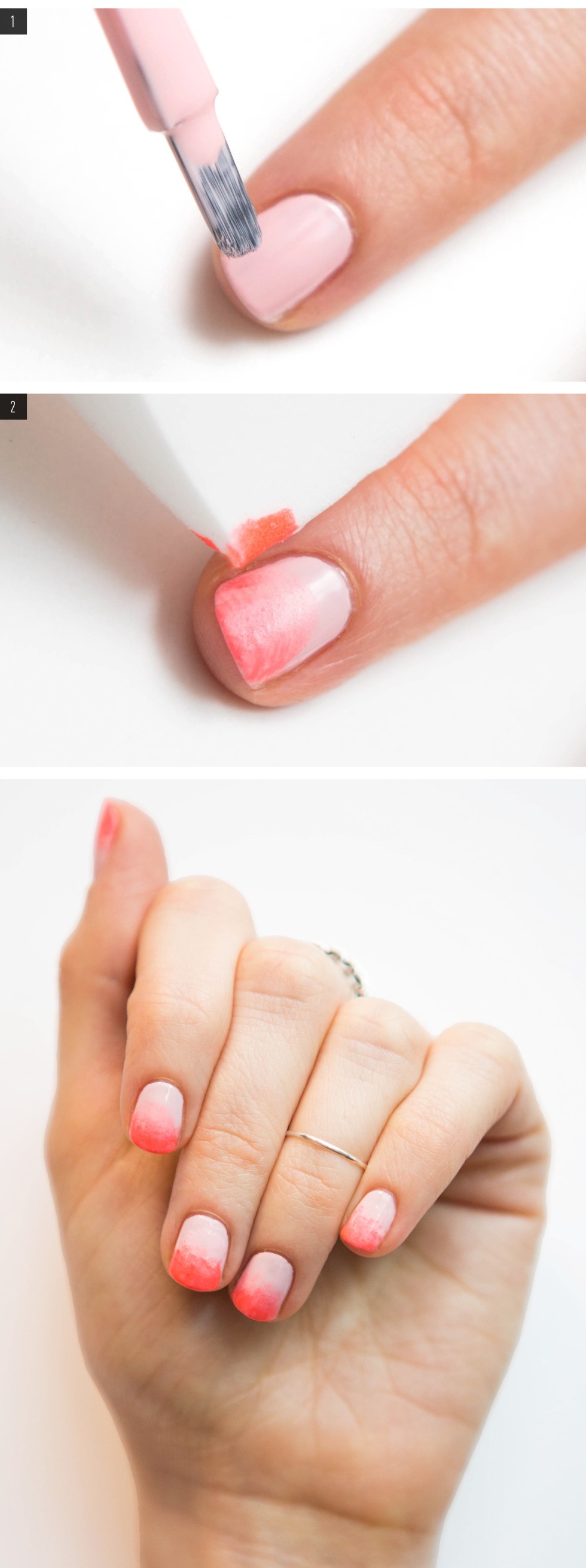Aplică apoi oja cu buretele pe unghie, începând de la jumătate către vârf.