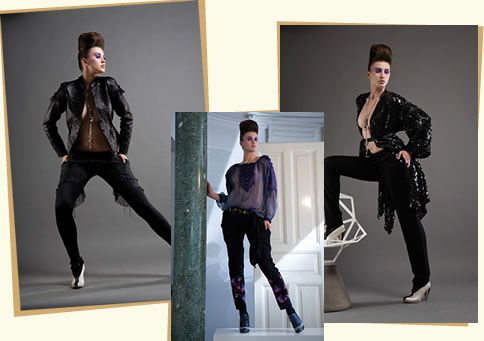 Pentru acest sezon am folosit piele, tricot si mixtul. Ca un pont, pot sa spun ca o combinatie intre cele doua materiale este foarte inspirata atunci cand vine vorba de pantalonii mulati. Broderia pe stofa este deosebita in aceasta iarna. Am folosit-o foarte mult pentru pantalonul cigarette si pentru topuri tunica. Geaca de piele in mixt cu detalii de dantela este transformata intr-o piesa glamour pretentioasa. Vesta de blana violet este un articol care personalizeaza colectia si da un aer chic, de voyage unei colectii urbane.