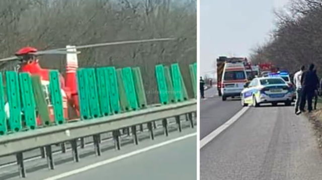 Teribil accident de circulație pe A2. O persoană a murit și alte trei au ajuns la spital, după ce o mașină s-a răsturnat