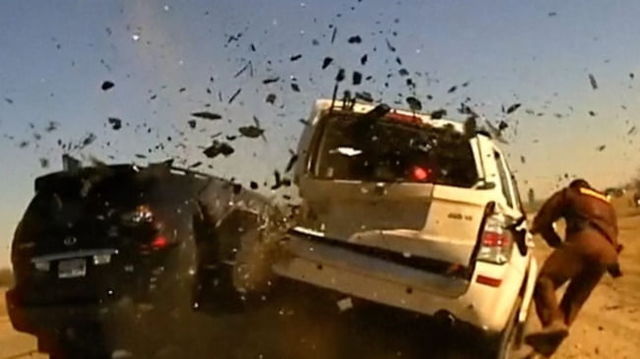 Polițist scăpat cu viață printr-un miracol. Imagini cu camera de bord care îl arată proiectat câțiva metri într-un accident violent VIDEO