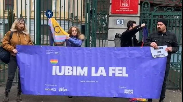 Câteva zeci de persoane din comunitatea LGBT s-au strâns în faţa sediului PSD. Ce i-au adus premierului Marcel Ciolacu