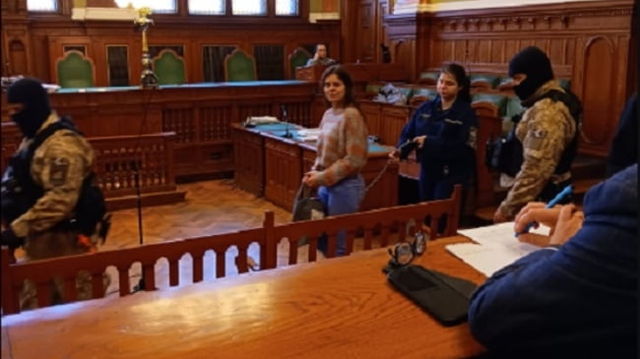 Imaginile scandaloase cu profesoara străină adusă în lanțuri în fața unui tribunal din Budapesta VIDEO