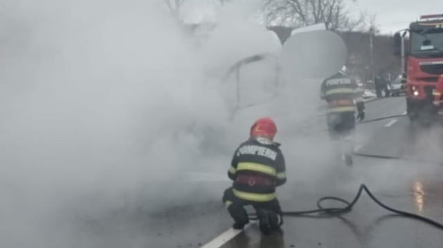 Un microbuz cu 18 călători la bord a luat foc în mers, la Neamț. Ce s-a întâmplat cu pasagerii