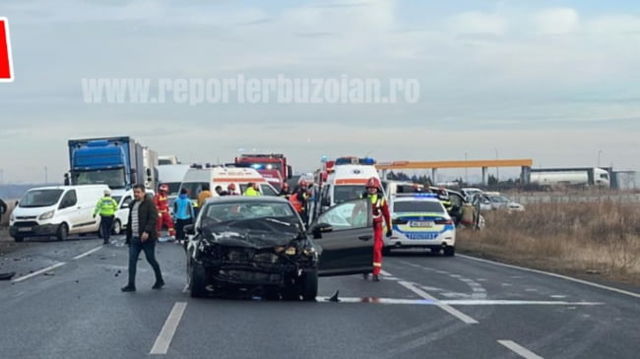 UPDATE Accident grav în Buzău cu 3 mașini implicate, între care un microbuz. 7 copii au fost transportați la spital