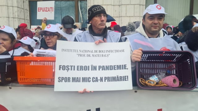 Angajații din sănătate, protest la Ministerul Finanțelor. ”Răbdarea noastră a ajuns la limită” VIDEO