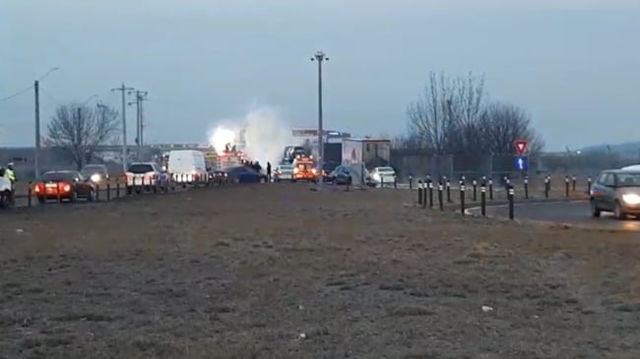 UPDATE Un camion care transporta mai multe mașini noi a luat foc pe DN1, la intrare în Ploiești. Traficul rutier este restricționat VIDEO