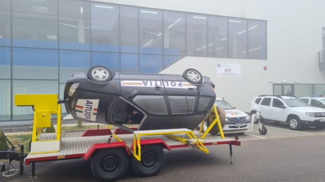 Cum învață elevii școlilor de poliție să se răstoarne cu mașina. Gestul banal care salvează viața: ”Împinge în tavan” VIDEO