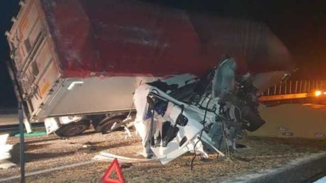 Grav accident rutier pe Autostrada Soarelui. Două TIR-uri s-au ciocnit, iar unul dintre camioane s-a răsturnat