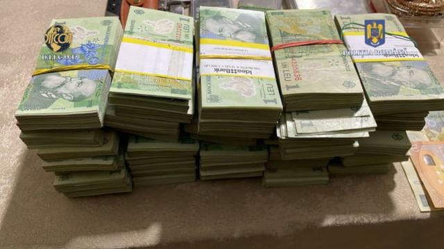 Teancuri de bancnote de 1 leu găsite în timpul perchezițiilor făcute la cămătari din București FOTO