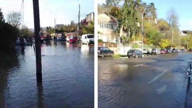 Străzi inundate în Cluj-Napoca din cauza unei conducte sparte. Apa în subsoluri a ajuns la 40 de centimetri VIDEO