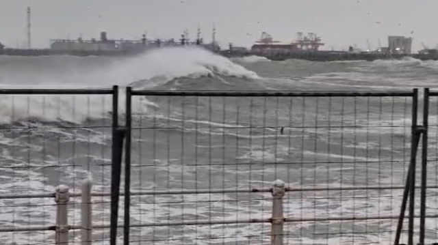 Valuri uriașe la Constanța. Imagini filmate duminică dimineața în zona Cazinoului VIDEO
