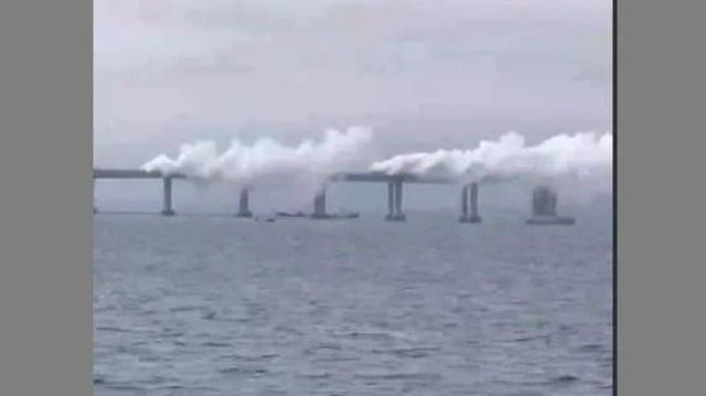 Podul Crimeei, învăluit în fum gros și închis circulației. Autoritățile pro-ruse neagă un atac, în ciuda alarmelor anti-aeriene VIDEO