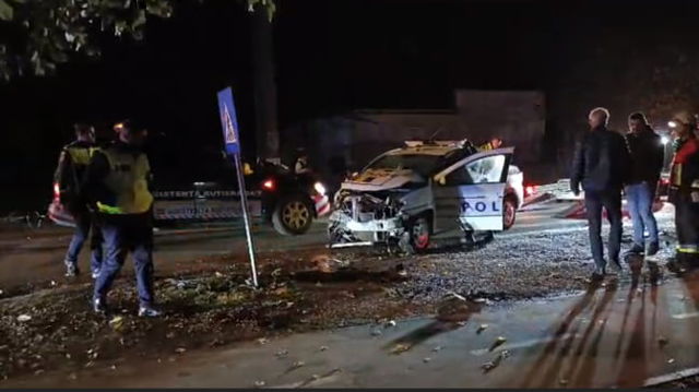 Două mașini de poliție s-au ciocnit, iar patru agenți au ajuns la spital după o urmărire în trafic