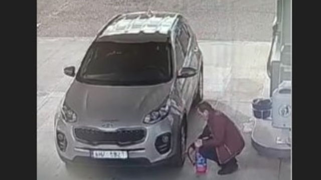 Moment viral într-o benzinărie. Un șofer a vrut să-și umfle roata mașinii cu stingătorul de incendiu VIDEO