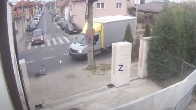 Biciclist lovit în plin de o autoutilitară. Accidentul, filmat de o cameră de supraveghere VIDEO