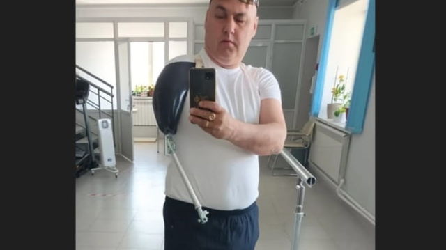 Un soldat rus cu un braț amputat în Ucraina a primit acasă un băț metalic în locul unei proteze. ”Când l-am văzut, mi-au curs lacrimi”