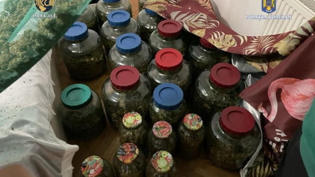 Canabis cultivat într-o seră și păstrat în borcane de murături. Descoperire polițiștilor din Dâmbovița