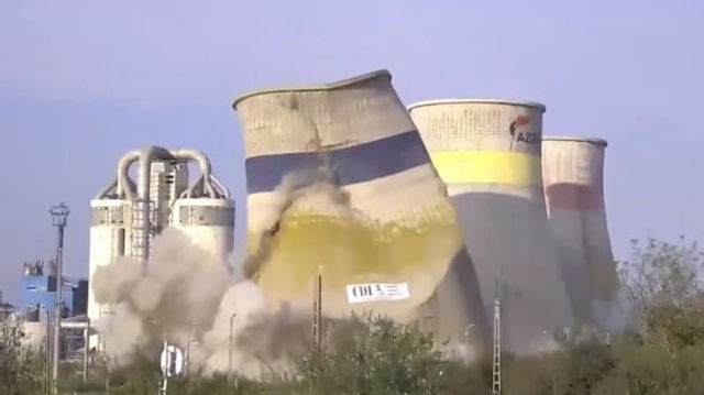 Un turn uriaș de la combinatul Azomureș, demolat cu 60 de kilograme de dinamită. Momentul imploziei VIDEO