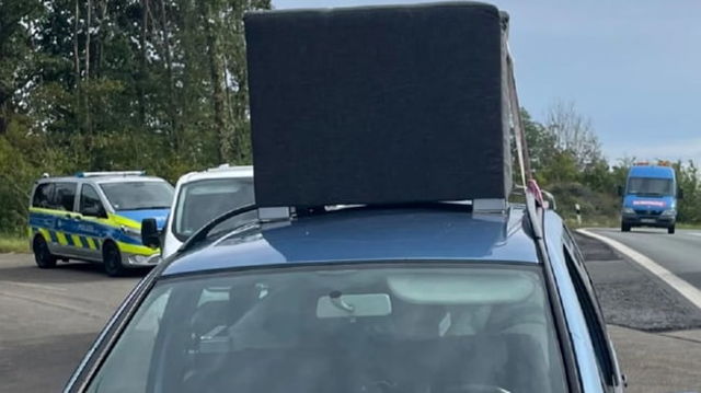 Român prins drogat la volan pe o autostradă din Germania. Mergea cu canapeaua legată pe plafonul mașinii
