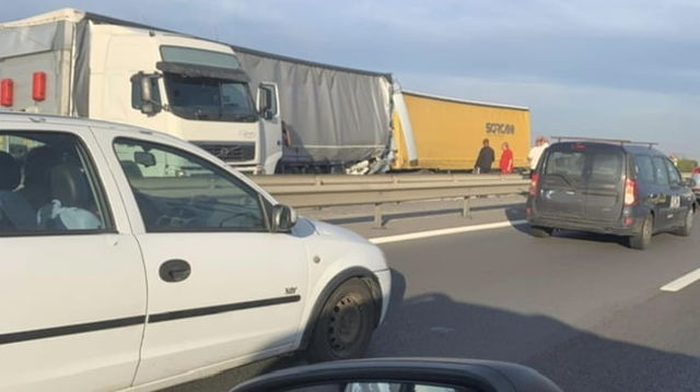 Accident în lanț pe Autostrada A1 între două TIR-uri și două autoturisme. Traficul la intrarea în Capitală, dat peste cap