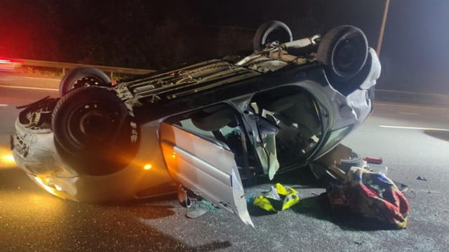 Nesimțirea extremă a unui român beat la volan: A adormit cu capul în jos după ce a provocat un accident grav pe autostradă