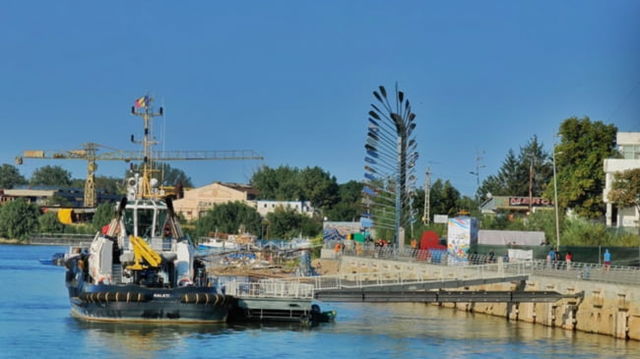 Cum arată monumentul dedicat lui Ivan Patzaichin amplasat pe noua faleză a orașului Tulcea. Marchează "poarta de intrare" în Delta Dunării