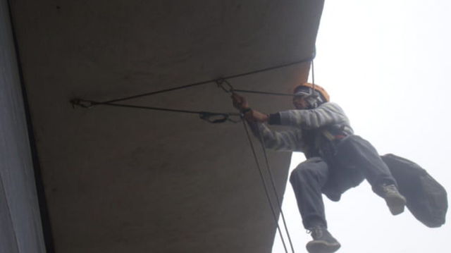 Un alpinist utilitar, la un pas să cadă de la etajul 11 după ce o pensionară a început să tragă de corzi: ”Au țipat să dea drumul că omoară un om”