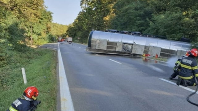 Circulație blocată pe DN7, după ce o cisternă cu etanol s-a răsturnat în zona localității Zamfirești, județul Argeș. Rute ocolitoare VIDEO