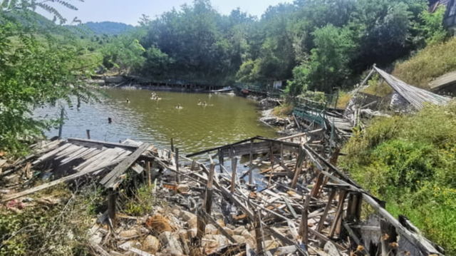 Paragina de la băile cu cea mai mare salinitate din România. Turiștii înoată printre scânduri și coboară în lac pe o scară improvizată VIDEO