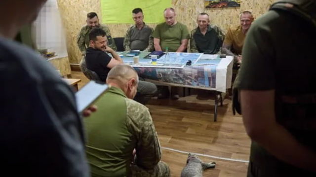 Întâlnire secretă între Zelenski, șeful armatei și principalii generali ai Ucrainei. O pisică domină încăperea și stârnește zâmbete