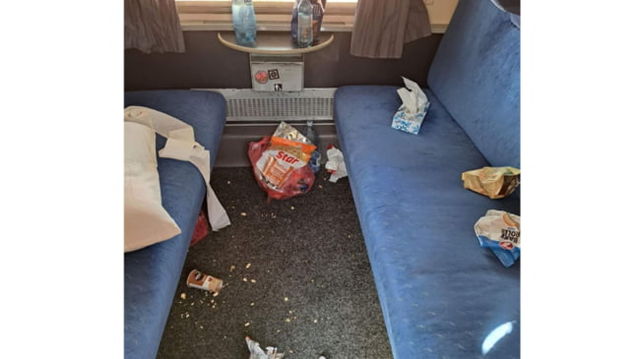 Cum arată compartimentul unui tren în care au călătorit elevi de liceu: "Sunt educați de o societate care interzice cu desăvârșire orice pedeapsă"