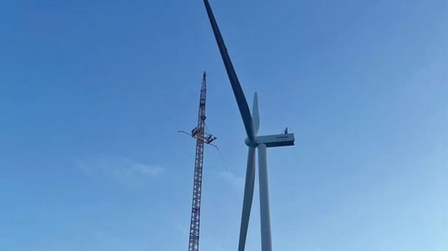 Cea mai mare turbină eoliană din România a fost montată: depășește în înălțime lungimea unui teren de fotbal. Alte 9 vor fi instalate