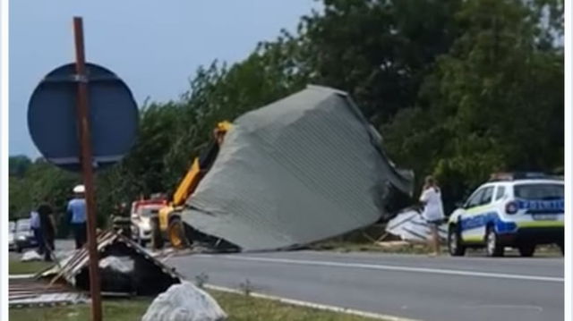 Furtuna puternică a smuls acoperișul unei benzinării din Timiș. Traficul rutier a fost afectat