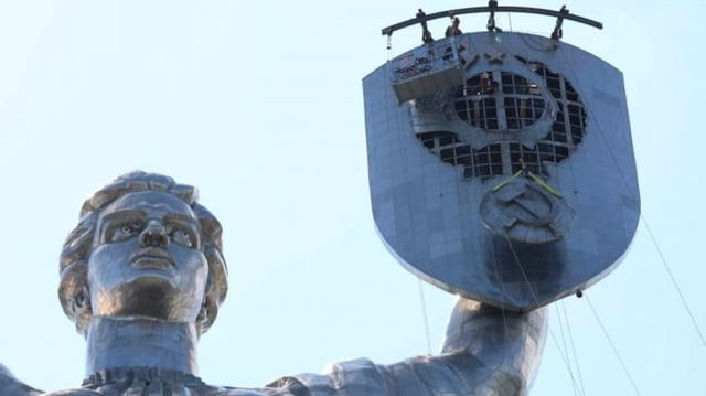 Kievul a dat jos stema sovietică de pe Monumentul Patriei, cea mai înaltă statuie din Europa VIDEO