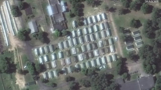 Imaginile din satelit care arată o acumulare semnificativă de vehicule militare în tabăra din Belarus unde staționează mercenarii Wagner