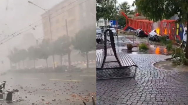 Furtună înfiorătoare în Elveția. O macara gigantică a fost doborâtă de vânt în mijlocul orașului VIDEO
