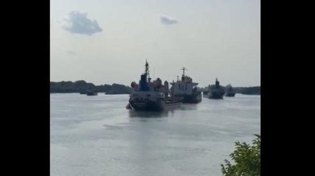 Cât de încărcată este acum Dunărea cu nave pentru transportul mărfurilor. Imaginea care arată aglomerația uriașă din Sulina VIDEO