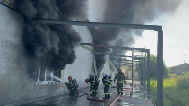 Un incendiu puternic a izbucnit într-o hală de depozitare a calculatoarelor din Mureș: Două victime, preluate de ambulanța SMURD