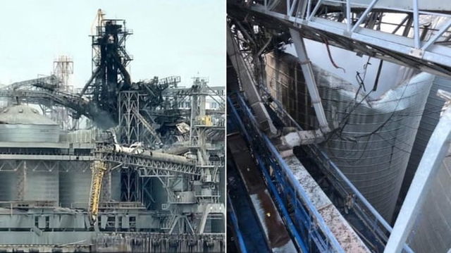 Terminale uriașe pentru grâne lovite de rachetele rusești în Odesa. "Erau depozitate 60.000 de tone de cereale destinate Chinei" VIDEO