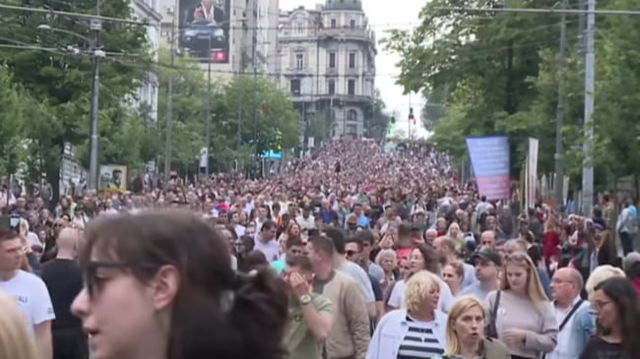 Zeci de mii de persoane au manifestat împotriva guvernului, la Belgrad, după două atacuri armate: "Serbia împotriva violenţei" VIDEO