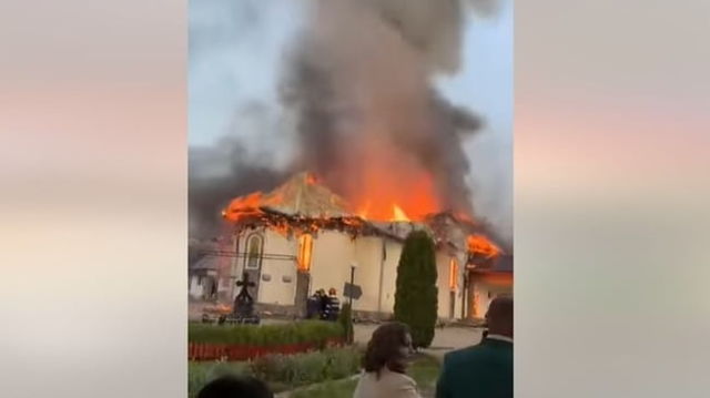 Imagini teribile de la incendiul care a mistuit o biserică veche din Bucovina și chiliile călugărești VIDEO