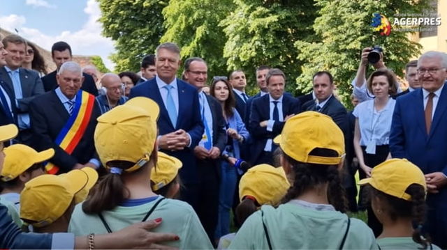 Un grup de copii le-a cântat lui Iohannis și președintelui Germaniei melodia "O lume minunată!" VIDEO